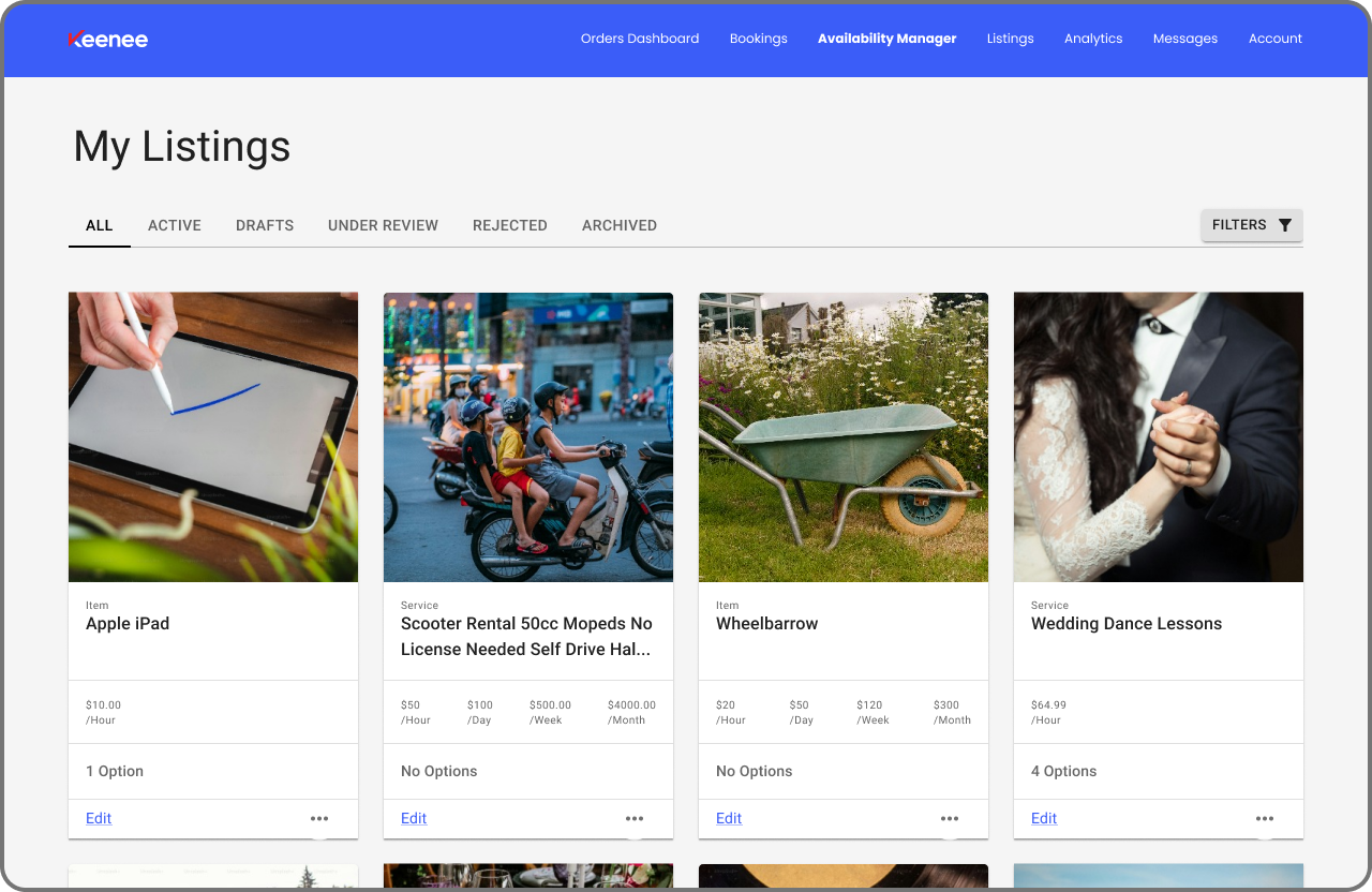 Vendors can easily view and edit listings on the Listings Dashboard.